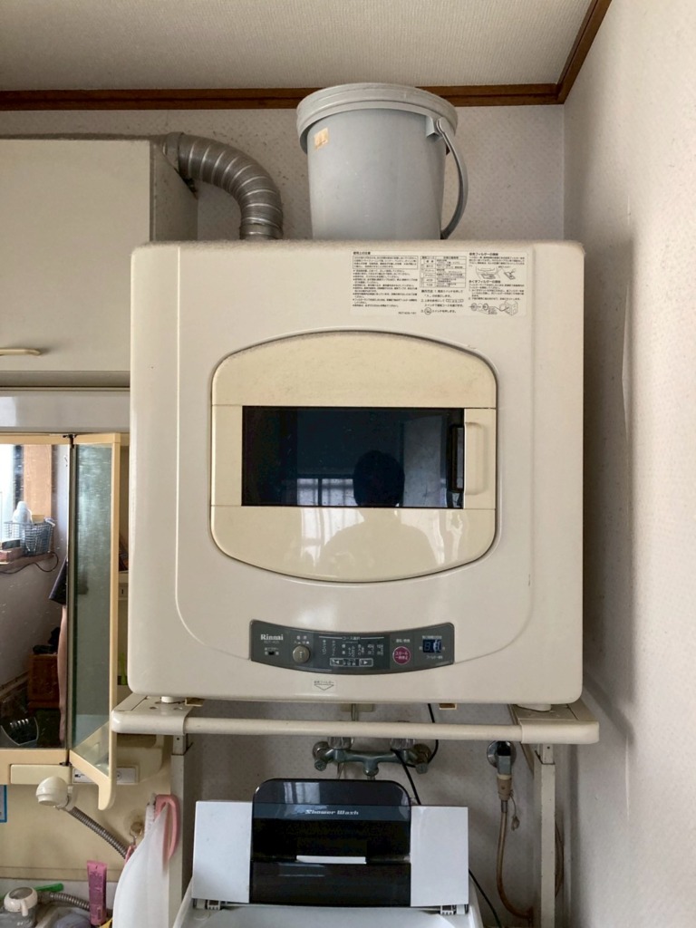 ガス衣類乾燥機の交換工事例です。長年愛用されてきた衣類乾燥機の交換工事ですので、専用設置台も一緒に交換させていただきました。排気配管はそのまま利用できるので、簡単にお取り替えいただけます。