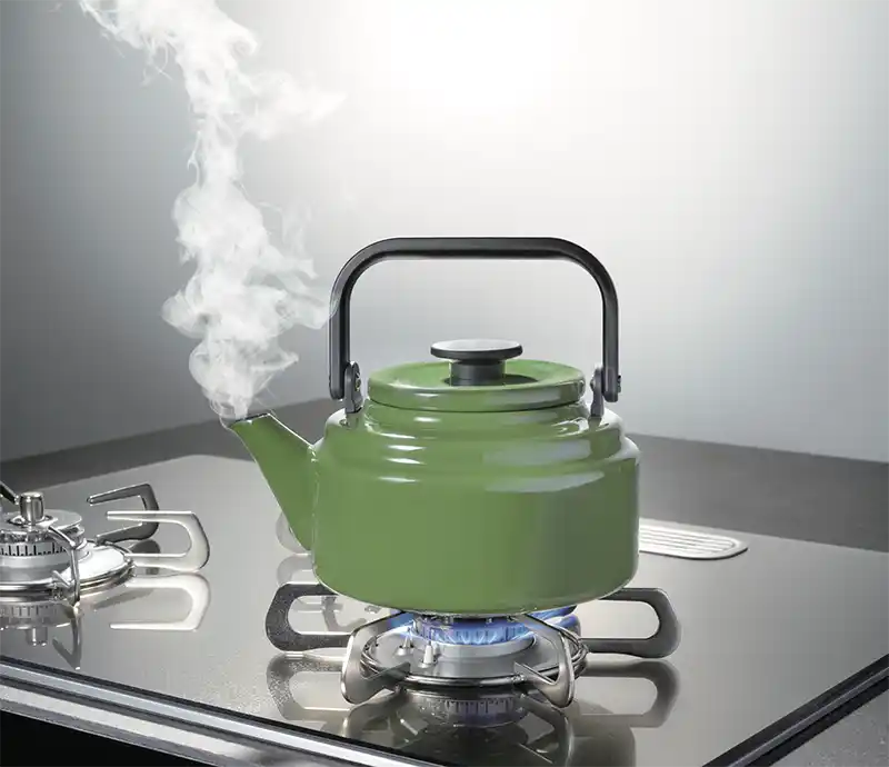 湯沸かしボタンを押せば、沸騰後に電子音でお知らせします、その後5分間保温して、自動消火します。